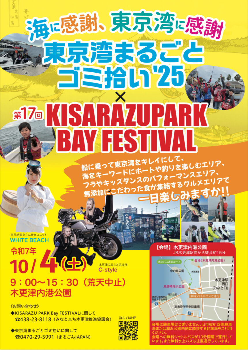 船に乗って網で東京湾のゴミ拾い!キレイにした後は、KISARAZU PARK BAY FESTIVALで盛りだくさんのイベントをみんなで楽しもう♪