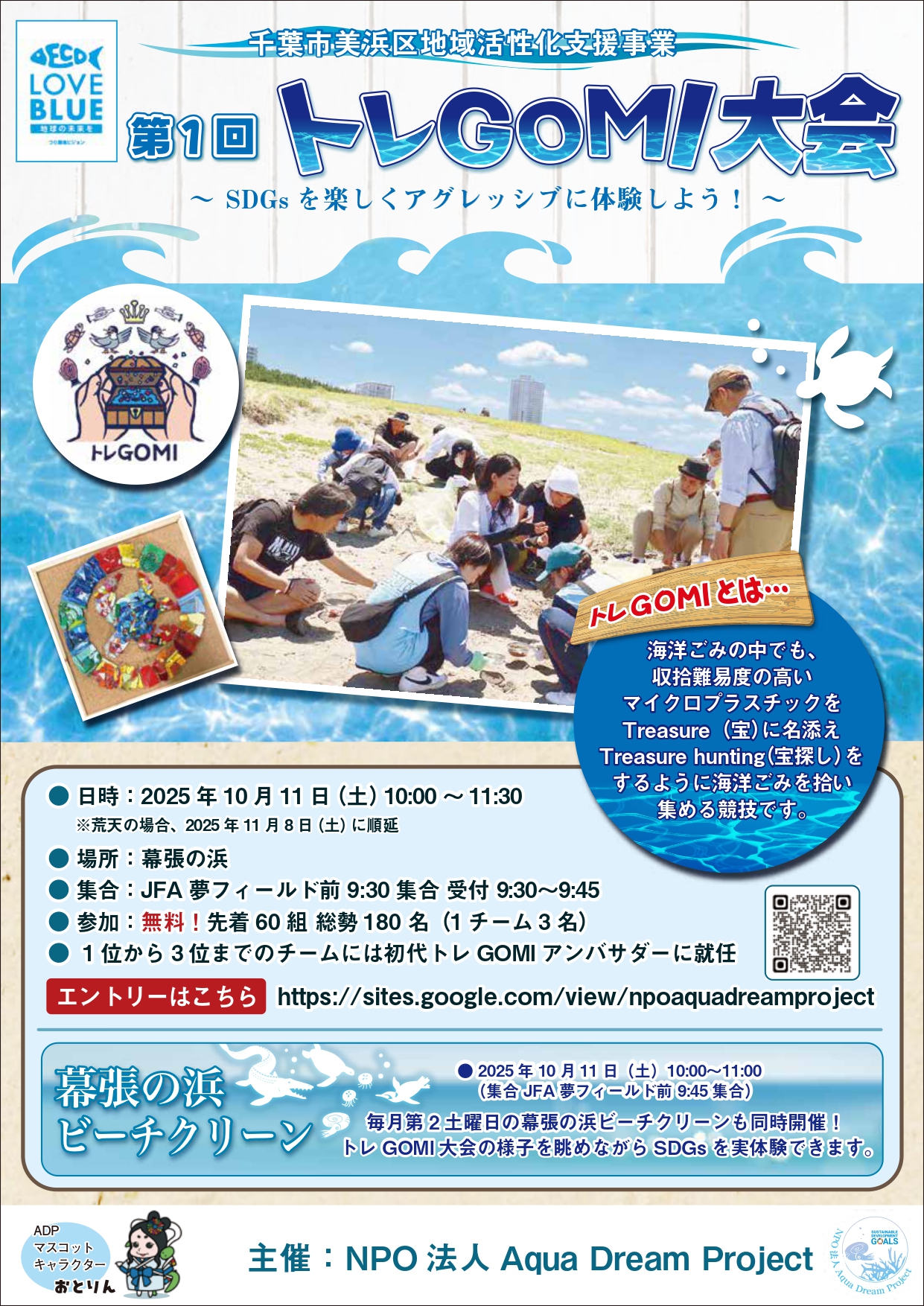 宝探し感覚でごみを拾い集めて競う「トレGOMI大会」が、2025年10月11日(土)、幕張の浜で初めて開催されます!