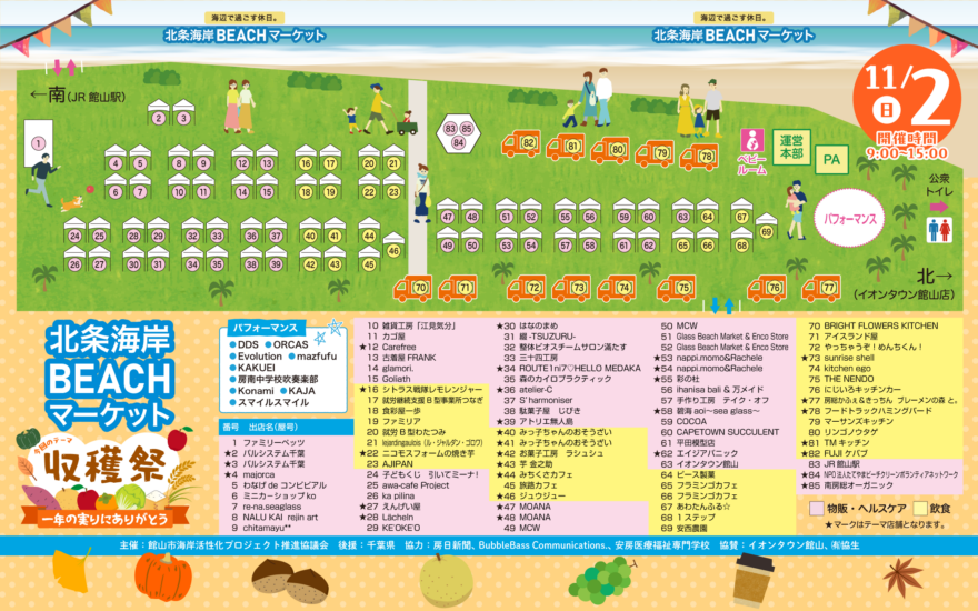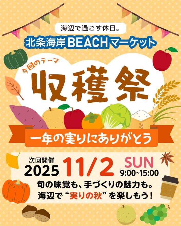 旬の味覚も、手づくりの魅力も。海辺で“実りの秋”を楽しもう!グルメ・雑貨・ヘルスケアなど、なんと 85ブース が大集結!そして今回は特に、ステージが豪華なので、ぜひHPでご確認ください!