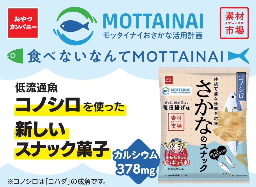 株式会社おやつカンパニーでは、おいしいのに、よく知られていないために、あまり流通しない魚・低流通魚を有効活用し、商品を通じてその魅力を発信することで持続可能な漁業を応援する『モッタイナイおさかな活用計画」を始動。その“モッタイナイおさかな”として「コノシロ」に着目しました。