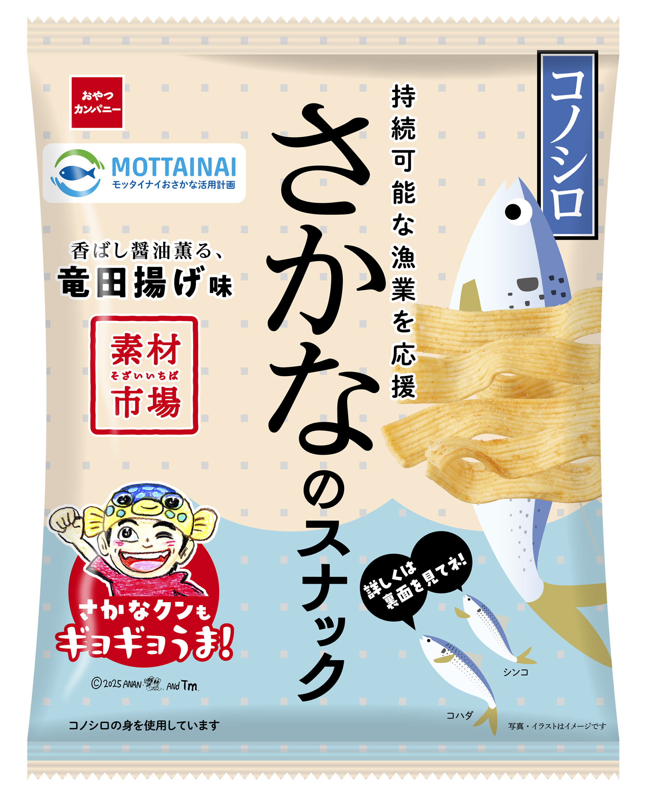 2025年10月27日(月)より、千葉県船橋漁港で獲れた低流通魚・コノシロを使ったスナック菓子『素材市場さかなのスナック』が株式会社おやつカンパニーより、全国で期間限定発売!