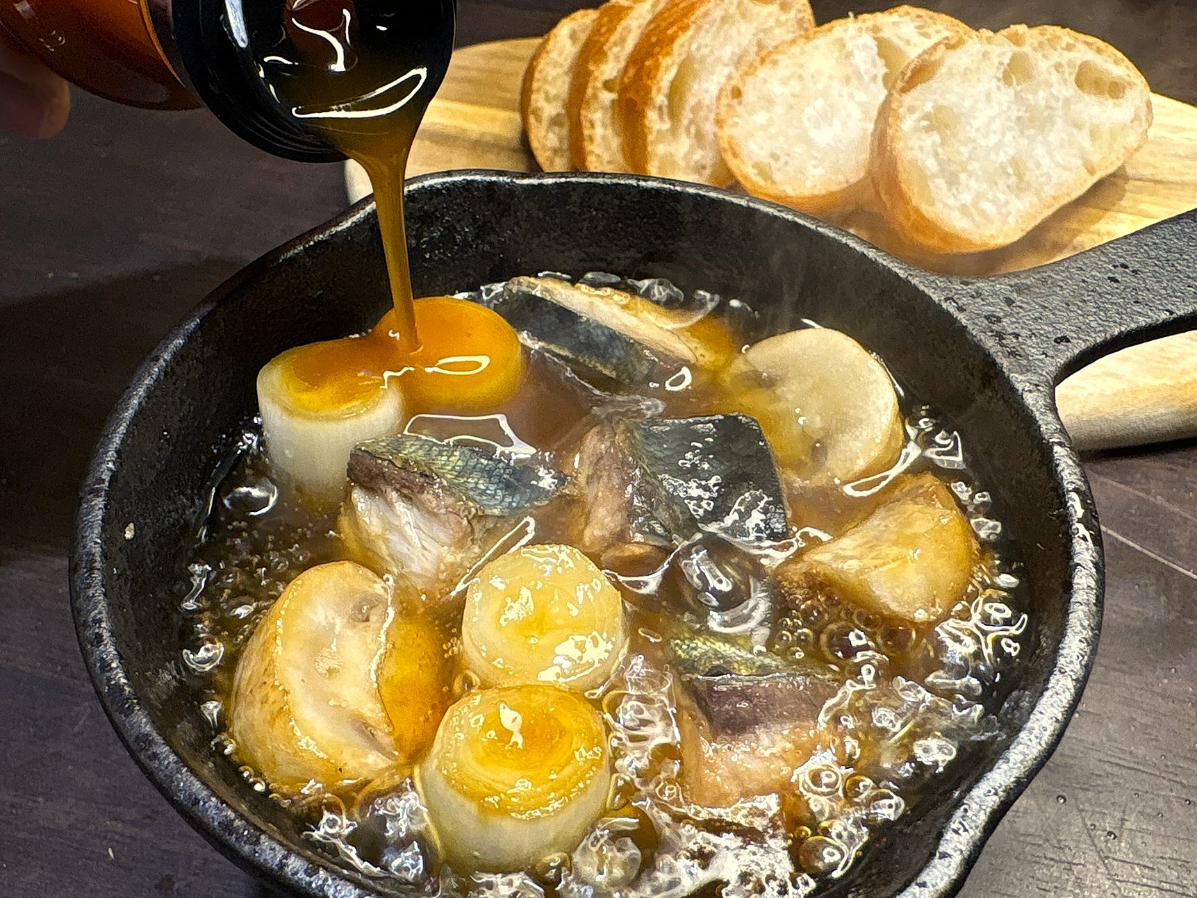 千葉県のグルメシーンで着々と広まっている「黒アヒージョ」。 県内の豊かな農林水産物を活用し、千葉県にゆかりの深い調味料、醤油を使ったアヒージョです。その「黒」の正体こそが、隠し味の醤油。料理を通じて千葉県の魅力を発信するために考案した新しいアヒージョです。