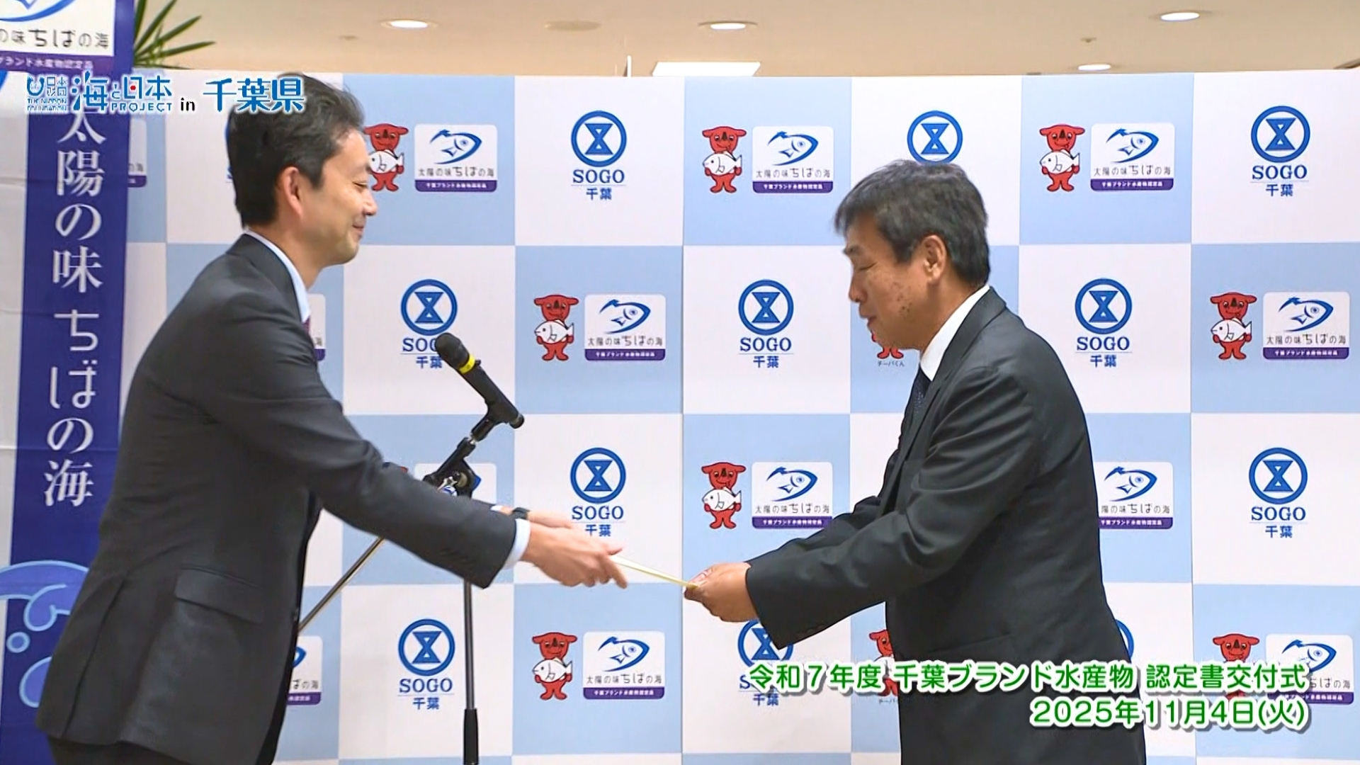 令和7年度に認定されたのは、12品目。「九十九里の蛤」や「銚子のつりきんめ」など千葉自慢の水産物が認定を受け、2025年11月4日に熊谷知事から認定書が交付されました。